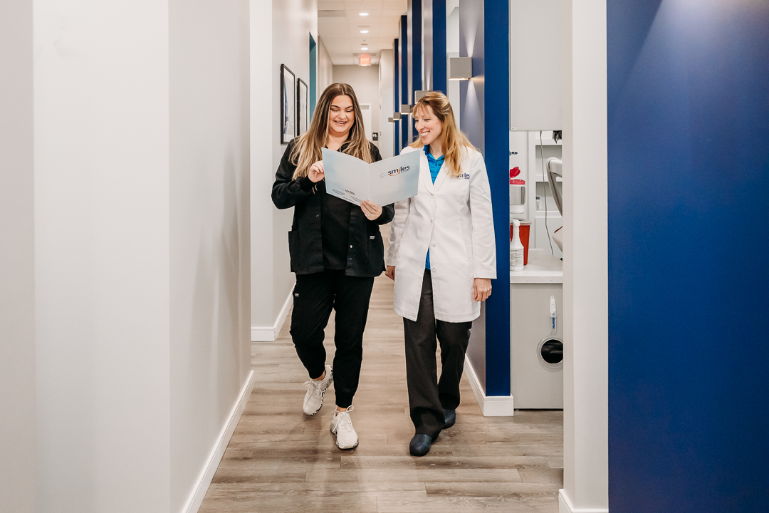 With the second patient, we photographed a detailed consultation. We included trays coming in, records being reviewed, and models used to explain treatment options. We also captured the doctor and patient walking together in the hallway, laughing and talking with ease.